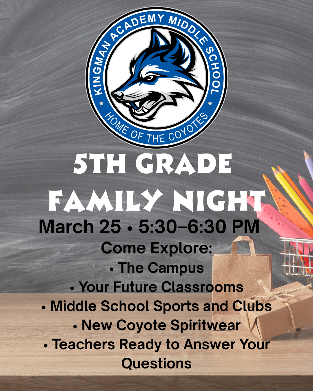 Next year your student will be heading to Kingman Academy Middle School, and we have a great opportunity for you to learn more about whatβs ahead!